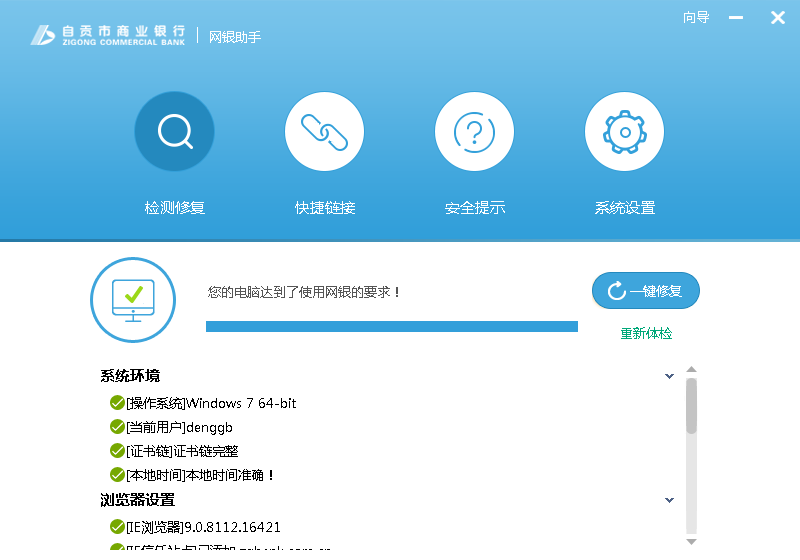 三、网上银行功能特点 1、全新的用户体验 自贡银行新一代网上银行秉持简捷、易用的精神,结合现代、实用等风格要素,为您打造您专属的网上银行服务。 (1)简洁舒适的视觉体验 对布局、色调、风格、字体和字号等进行了调整优化;强调简洁、清新、现代、充满活力又不失沉稳,以传承我行品牌形象,并体现电子银行特征,增强用户视觉美感和舒适度。 (2)个性便捷的操作体验 提供可收展查询方式、多种数据导出方式、 4级标签式菜单、客户端兼容性等功能。 (3)明晰周到的帮助服务 提供菜单命名及操作方式易用、多方位的帮助提示、报错提示优化等功能。 2、更安全的登录方式 自贡银行网上银行在证书登录(USBKey证书)基础上,新增用户名、密码双重认证方式登录。证书方式登录后,可使用上述所有网银功能,安全快捷。 四、使用指南 1、网银登录 网银提供证书登录(USBKey证书)方式登录,证书方式登录后,可使用上述所有网银功能,安全快捷。 2、证书更新 1、目前自贡银行数字证书(USBKey证书)的使用有效期是三年,临近过期时,请登录网银后,在证书更新菜单中完成证书更新操作。 3、网银助手安装 为保证您的账户资金安全,在您使用我行网银之前,请先安装我行最新版本的网银助手。 网银助手安装 进入网上银行登录界面,在下载中心中点击“网银助手”。