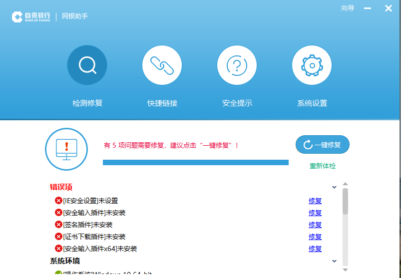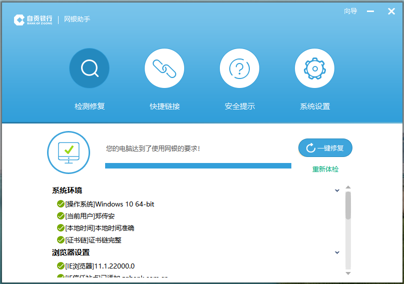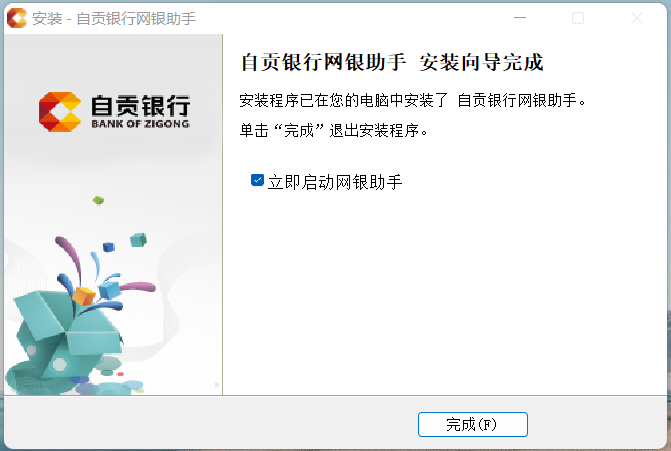 2、请根据提示完成数字证书下载。 温馨提示: 如您是(USBKey证书)用户,下载证书过程中请保证您的(USBKey)已插在您的电脑上,并请不要在下载过程中拔出(USBKey)。 3、证书更新 1、目前自贡银行数字证书(USBKey证书)的使用有效期是三年,临近过期时,请在“证书管理”中的“证书更新”菜单中进行证书更新业务,并在下载有效期(14天)之内完成证书下载。 4、网银助手安装 为保证您的账户资金安全,在您使用我行网银之前,请先安装我行最新版本的网银助手。 网银助手安装 进入网上银行登录界面,点击“网银助手”。